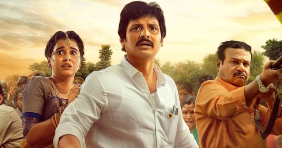 Thalaivar Thambi Thalaimaiyil is a political dark comedy that follows Jeevarathnam, a local politician played by Jiiva. He takes charge of organizing Ilavarasu’s daughter, Sowmya’s, wedding, portrayed by Prarthana Nathan. The wedding is set to take place at the bride’s home, but complications arise when a death occurs in the neighboring house.